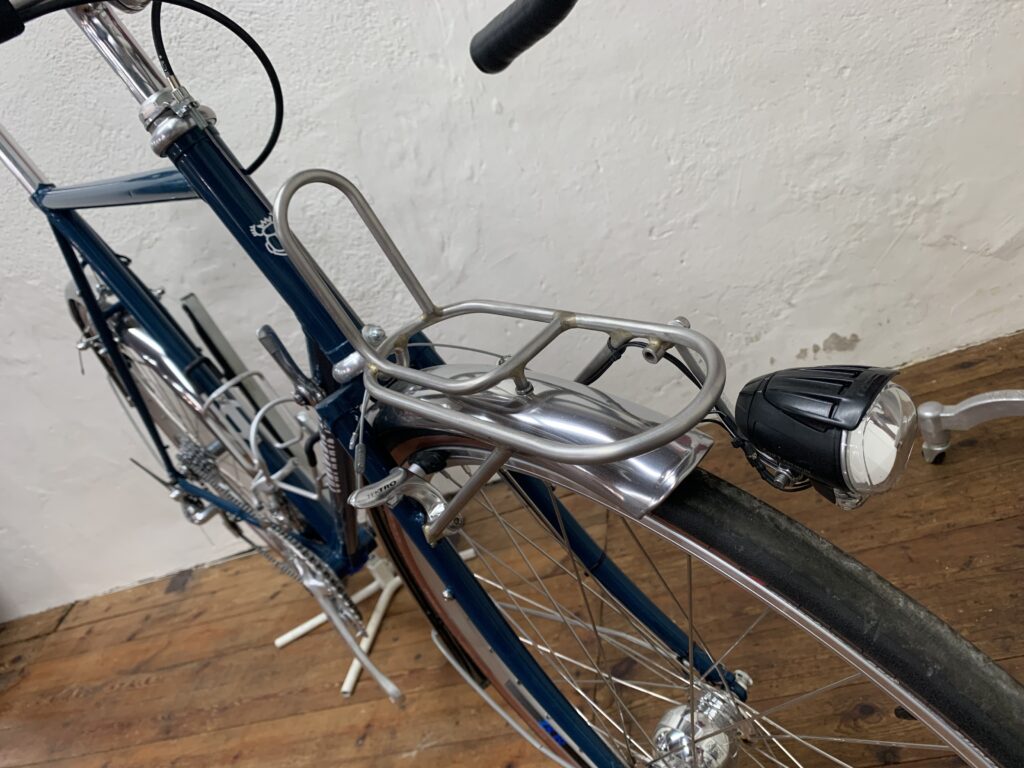 - L’éclairage par dynamo bouteille est « imposé », sauf pour le cadre en taille 57, dont la patte de dynamo avait été coupée avant peinture, et qui dispose donc d’un éclairage par moyeu dynamo (SON Delux Wide-Body). En revanche, des feux identiques et de qualité ont été installés sur les cinq vélos (B&M IQ Cyo Premium à l’avant, B&M Secula à l’arrière).