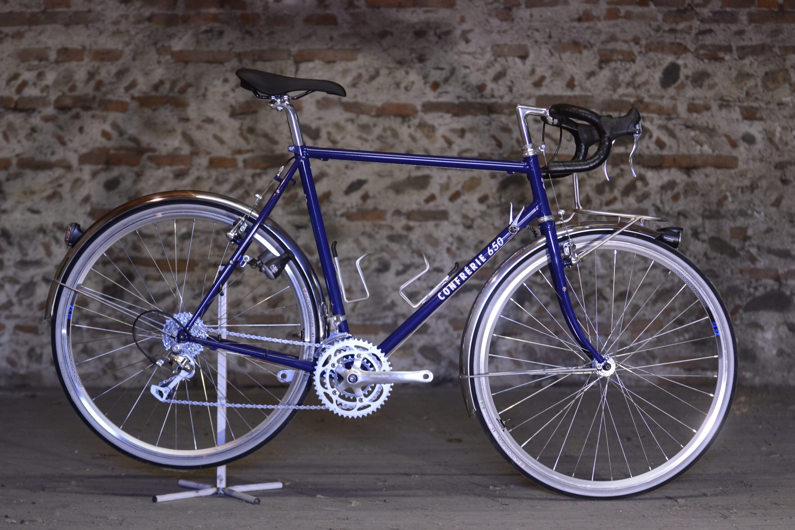 Les cadres sont donc des Cyfac en tubes Reynolds 725, en hauteurs 49, 53, 55, 57 et 59. Comme pour Cévennes et Aubrac 2, les cadres sont « carrés » (ou presque) dans les grandes tailles (55 et plus), tandis que les petites tailles sont plus longues que hautes.
